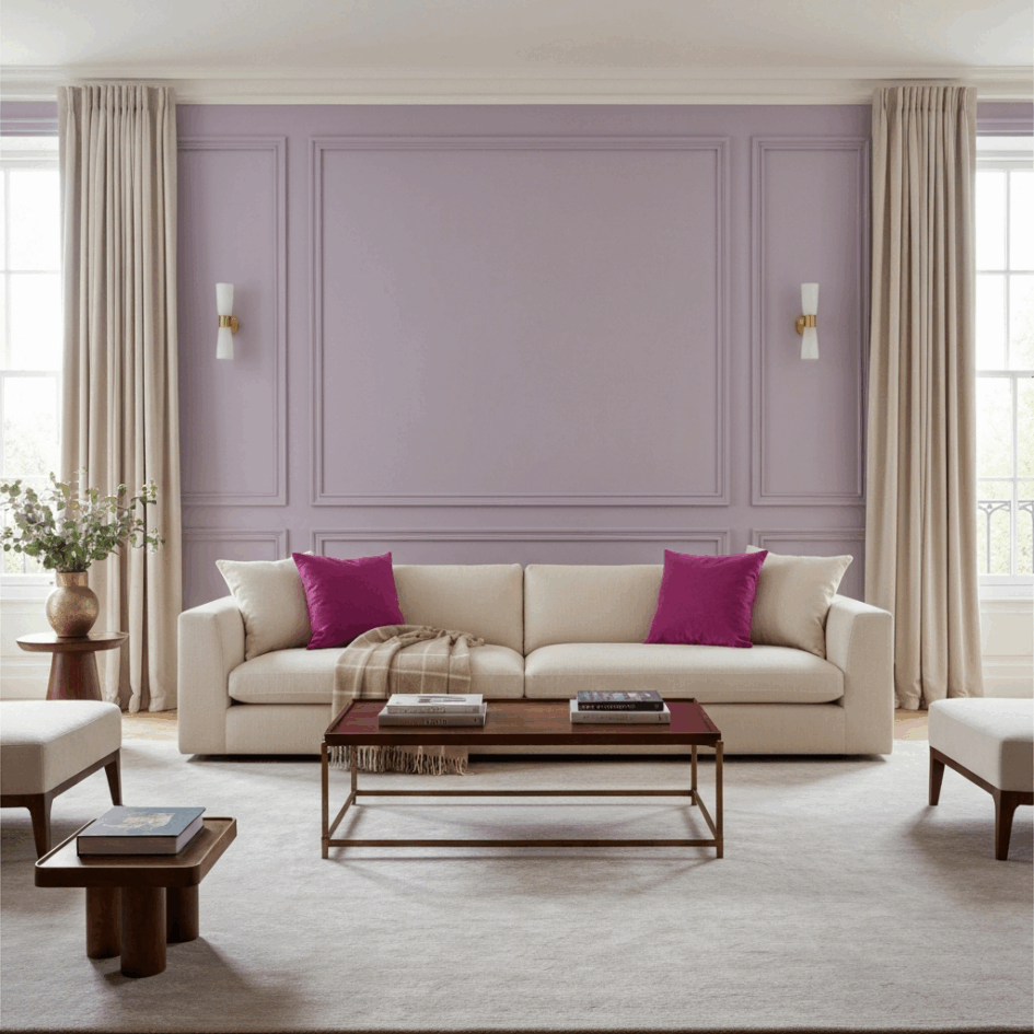 Klaar voor de volgende stap? Een paarse accentmuur is een fantastische manier om diepte en karakter aan een kamer te geven. Kies de muur die je het meest wilt benadrukken, zoals de wand achter je bank of het hoofdeinde van je bed. Een diepe paarse kleur creëert een knus en geborgen gevoel, ideaal voor een zithoek. Zorg wel voor voldoende licht, zowel natuurlijk als kunstmatig, om te voorkomen dat de ruimte te donker wordt. Combineer de muur met lichte meubels en vloeren om de balans te bewaren.